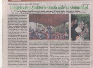 El Auditorio Natural es un espacio impulsado por los jóvenes y docentes de la Orquesta de Música Popular Raíces, construido colectivamente con el aporte y las manos de todos, utilizando materiales ecológicos.