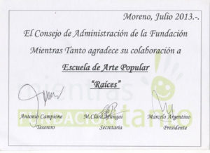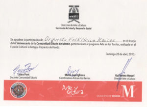 Nacieron aquí orquestas de música clásica así como también la Orquesta de Música Popular “Raíces” . Trabajos concretos que permiten fortalecernos sabiendo que las necesidades se transforman en ideas, y las ideas, en posibilidades.
